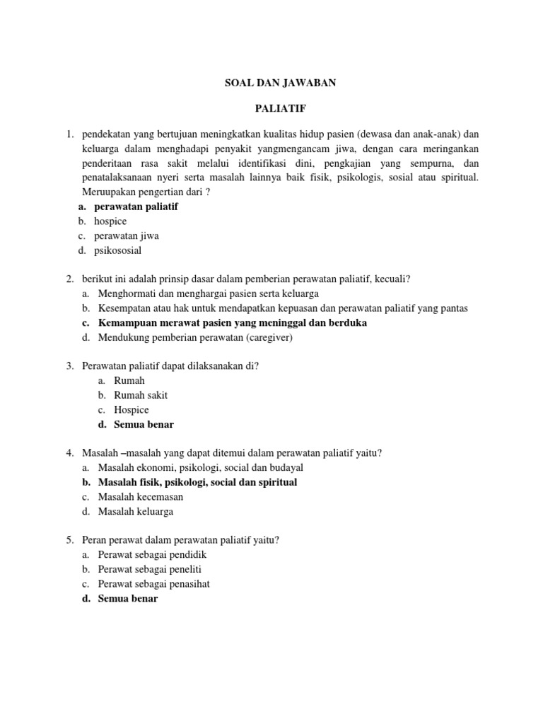 Soal Dan Jawaban Matakuliah Paliatif