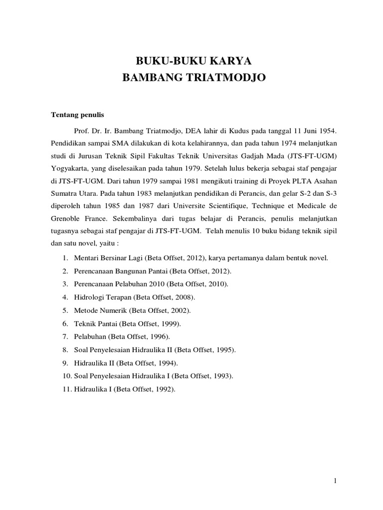 Hidrolika bambang triatmodjo free le hidrolika bambang triatmodjo pdf book download at digital online. 979-8541-07-3 Tahun Terbit. Beta Offset ISBN.