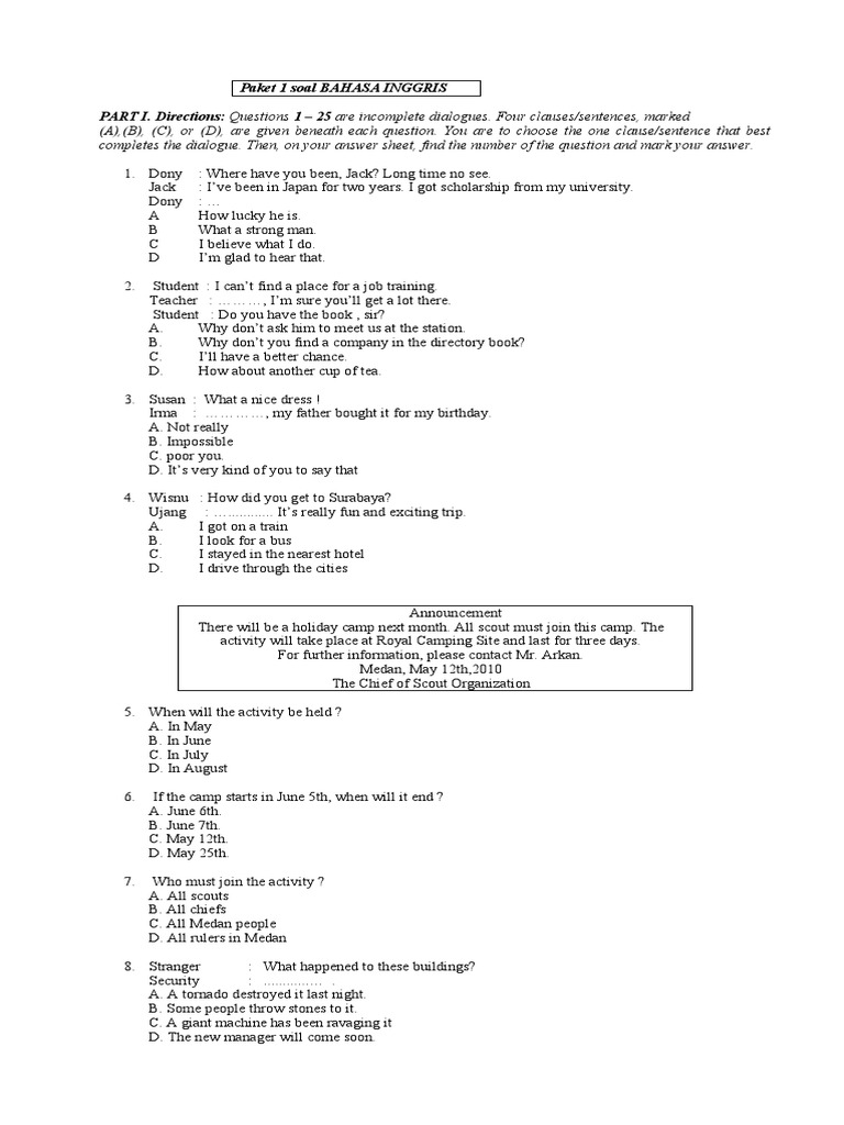 Soal uts bahasa inggris kelas 8 2017. Naskah soal bahasa inggris disini terdiri atas 2 model soal yaitu soal pilihan ganda dan essayuraian. Latihan Soal Dan Kunci Jawaban Usbn Bahasa Inggris Smk 2020 Revisi 2021Kunci jawaban ujian nasional 2017 smkSoal dan kunci jawaban ujian sekolah seni budaya smp kurikulum 2006 tahun pelajaran 2019 2020 kementerian pendidikan dan kebudayaan republik indonesia telah menetapkan bahwa pelaksanaan ujian nasional tingkat sd smp sma dan smk dibatalkan karena merebaknya.